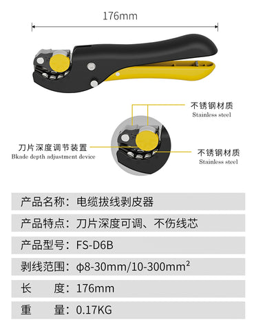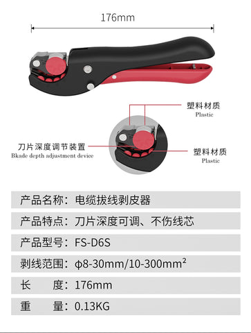 1. For stripping the plastic or rubber insulation of the single, multiple cables and wires of 10-30mm².